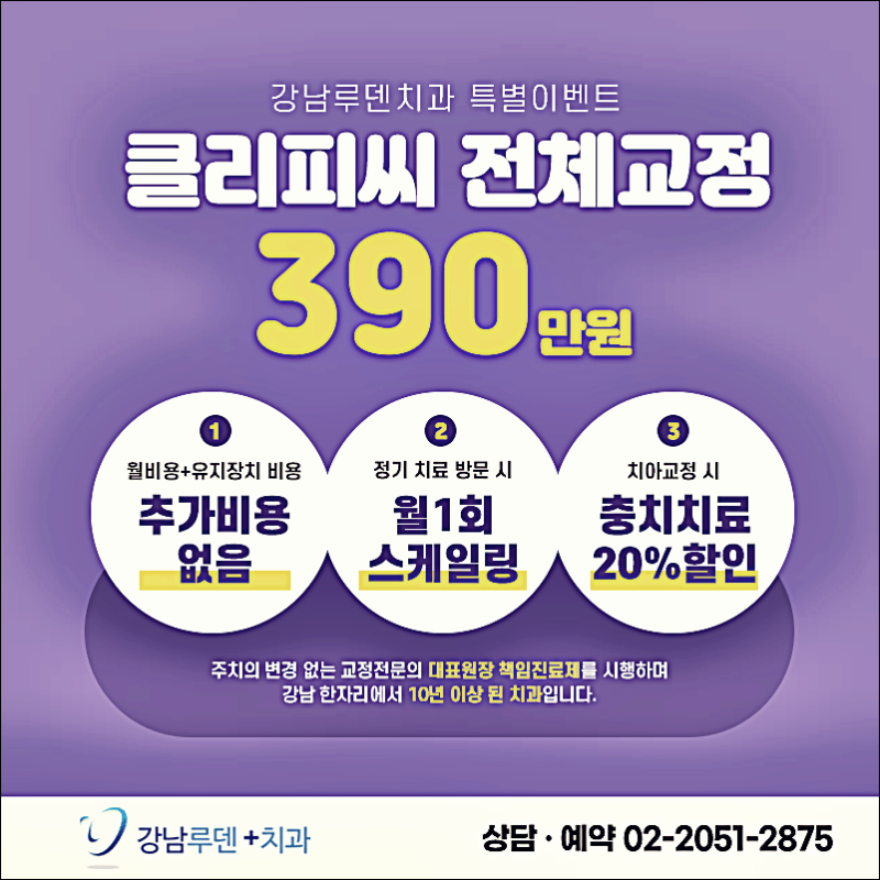 하얗고 치아가 가지런한 사람이 자기 관리를 잘하는 사람인 것 같아서 더 믿음직스러운 이미지를 형성할 수 있어요. 자신을 꾸미는 것이 사회생활의 기본이 되었고, 냄새, 옷, 메이크업, 스타일링이 점점 더 중요해졌습니다. 점점 매력적으로 변해가는 사회에서 깨끗한 구강라인을 갖고 싶은 분들은 강남치과의원을 통해 교정치료를 찾으십니다. 1~2년 정도의 치료이기 때문에 각 부분을 꼼꼼히 따져보고 결정을 내리셔야 할 것 같습니다. 구강의 구조는 협소하고, 휜 치아의 교정은 그만큼 복잡한 계획이 필요하기 때문에 신경써야 할 곳이 많습니다. 덜 지루한 한 줄만 고려하지 않도록 주의해야 합니다.