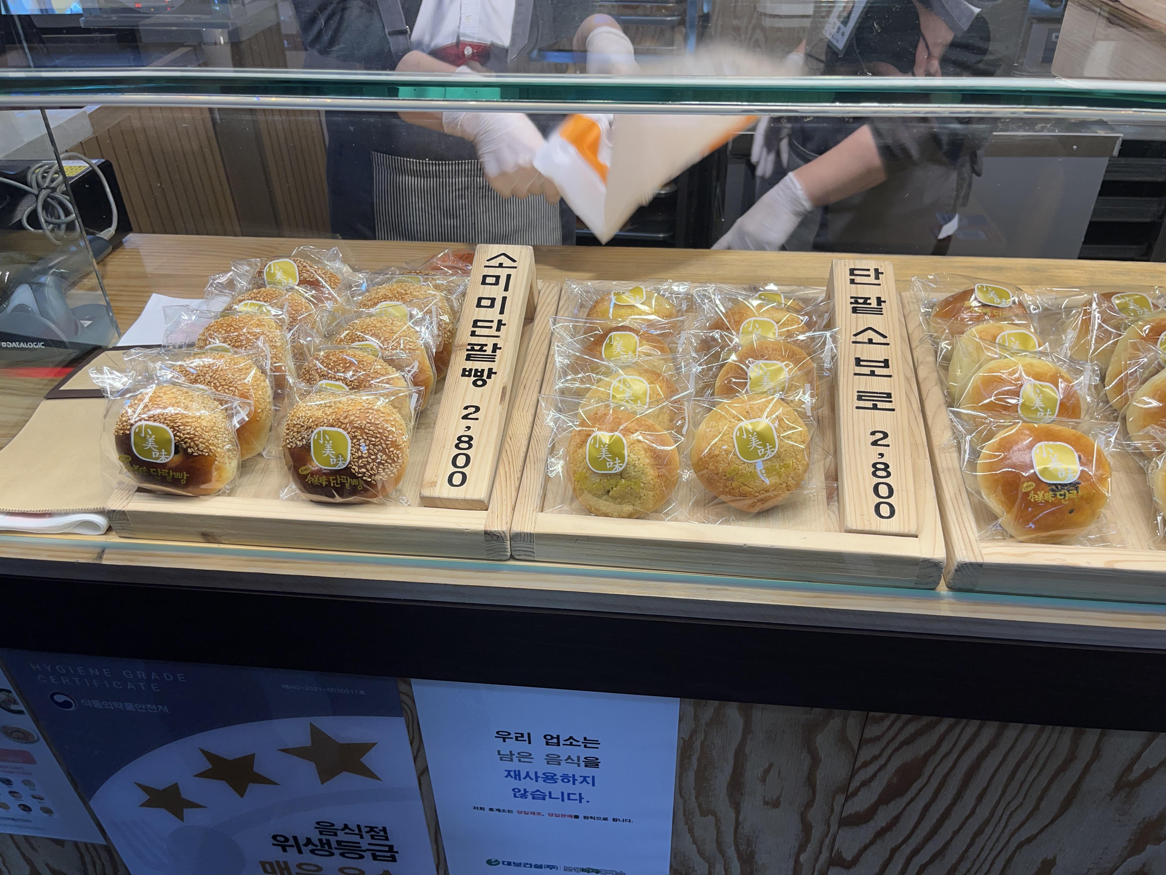 휴게소 식당에는 단팥이 들어간 소미미 베이커리가 있었다. 가족들과 먹으려고 종류별로 여러개 샀어요. ‘베이비 버트’라는 달달한 빵에는 치즈가 들어있고, 다른 빵에는 달달한 팥소가 들어있어 빵의 맛을 풍부하게 만들어준다.