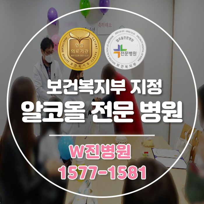 알코올중독치료병원 W진병원 OOO님단주 3주년환자 개개인에게 맞는 치료방법을 수립하여 설계하고, 이를 바탕으로 정신건강의학과 전문의 일대일 상담, 알코올 특화 프로그램 참여를 통해 집중적인 신체적 & 정신적 회복을 도모하는 것을 말합니다.효과적인 치료를 진행하기 위해 정신학적 검사와 기저내과 질환 검사를 실시하고 정신건강의학과 전문의와 소화기내과 전문의의 협진 진료를 통해 환자의 상태와 질환의 단계, 나타나는 증상의 정도를 보면서 필요한 치료를 받을 수 있도록 하고 있는 것입니다.알코올의존증치료병원 W진병원 OOO님단주 2주년본원은 환자 개인의 특성을 고려한 알코올중독치료병원을 통해 본인이 알코올중독임을 자각할 수 있도록 지속적으로 케어하고, 다양한 알코올중독치료 프로그램으로 퇴원 후에도 술 없는 맑은 정신으로 사회생활을 유지하며 단주를 이어가도록 하겠습니다.알코올중독치료병원 W진병원은 재발예방교육, 알코올교육, 인간관계훈련, 오락프로그램, 완전생활 등 다양한 프로그램을 진행하여 음주문제에 대해 환자 스스로 인지할 수 있도록 지원하고 있습니다.알코올중독치료병원 W진병원 추석행사환자의 심신 안정과 체계적인 프로그램을 통해서 집중력 향상, 스트레스 해소, 대인 관계 형성 등 정신적 및 신체적 건강을 돕고 치료 경험 많은 의료진이 함께 하고 있기 때문에 빨리 호전으로 이어진다고 생각합니다. 1. 건강 교육 시간에는 잦은 음주가 육체적 정신적으로 어떤 폐해를 일으키는지를 이해합니다.2. 동기 강화 프로그램을 통해서 알코올 의존증에 대해서 명확히 인지하고 근본적인 변화를 찾기 위한 노력을 계속합니다.3. 알코올 인지 행동 치료를 통해서 술만 즐거움을 준다는 사고와 인지 구조를 깹니다.4. 알코올 중독 질환에 대한 전반적인 이해와 회복을 위한 여정을 검토하고 이해합니다. 5. 재발 예방 프로그램을 이수하고 위기 상황에서 다시 음주의 위험 요소를 점검하고 위기를 극복할 수 있는 대처 능력을 키웁니다.알코올중독치료병원 W진병원 이벤트이러한 프로그램을 통해 술 의존도를 낮추고 다양한 취미생활 활동을 통해 삶의 즐거움과 건강을 생활을 즐길 수 있도록 W진병원은 다양한 치료 프로그램으로 환자들이 술 없이도 자신감과 함께 온전한 정신으로 일상으로 복귀할 수 있도록 케어하고 있습니다.저희 W진병원은 전문알코올중독치료병원으로서 환자의 회복을 위해 노력하고 있으며 도움을 받아 다시 노력해보면 그 노력에 대한 보담이 돌아오는 날이 반드시 있을 것입니다.위 이미지를 클릭하시면 알코올중독병원, W진병원과 실시간 카카오톡 상담이 가능합니다.(평일 오전 9시 – 6시)알코올중독자 치료 W진병원 알코올중독 치료 및 입원, 외래(통원) 진료와 관련하여 더 궁금하신 사항은 365일 상담 가능한 1577-1581로 문의하시기 바랍니다.알코올 중독 치료가 처음이므로 두려움이나 치료 시기가 늦어진다면 W진병원만의 특별하고 쾌적한 프로그램과 치료로 일상으로의 빠른 회복을 기대할 수 있습니다.감사합니다。알코올중독자 치료 W진병원 알코올중독 치료 및 입원, 외래(통원) 진료와 관련하여 더 궁금하신 사항은 365일 상담 가능한 1577-1581로 문의하시기 바랍니다.알코올 중독 치료가 처음이므로 두려움이나 치료 시기가 늦어진다면 W진병원만의 특별하고 쾌적한 프로그램과 치료로 일상으로의 빠른 회복을 기대할 수 있습니다.감사합니다。