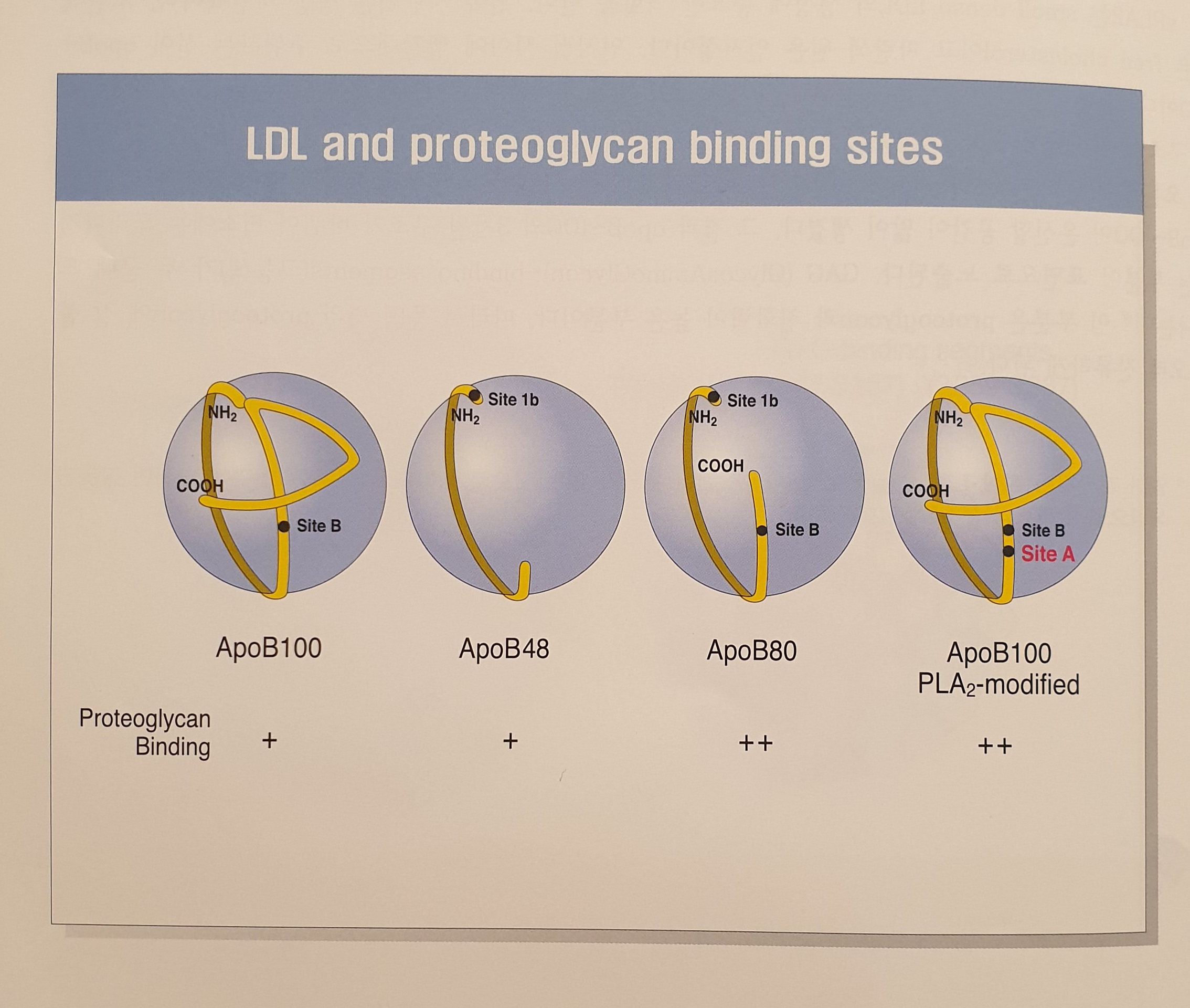 정상적인 LDL-apoB-100에서 프로테오글리칸 결합 부분은 3359-3369 아미노산(사이트 B)에 존재합니다.