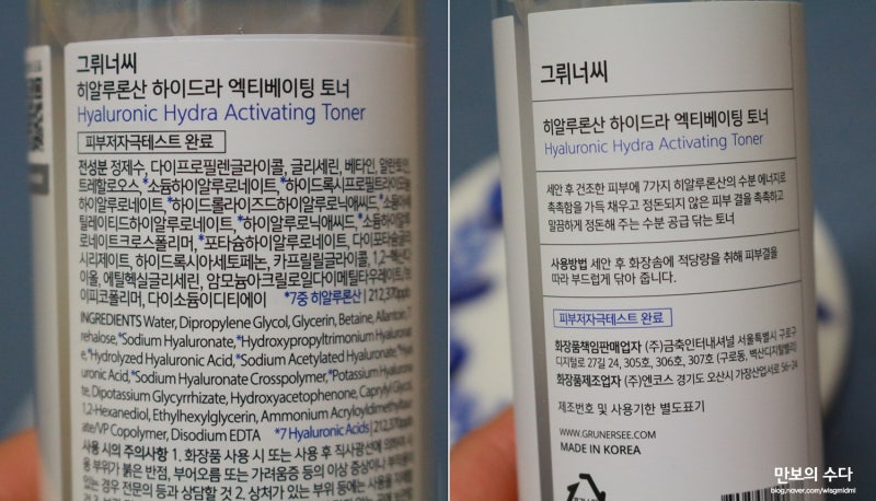성분을 잘 살펴보면 히알루론산 토너의 저분자 폴리머에 히알루론산과 소듐하이알루로네이트가 자세하게 들어있어서 아주 좋다고 하더라구요. 확실히 흡수가 잘 되는 것 같아서 닦아내고 피부에 착 달라붙습니다.